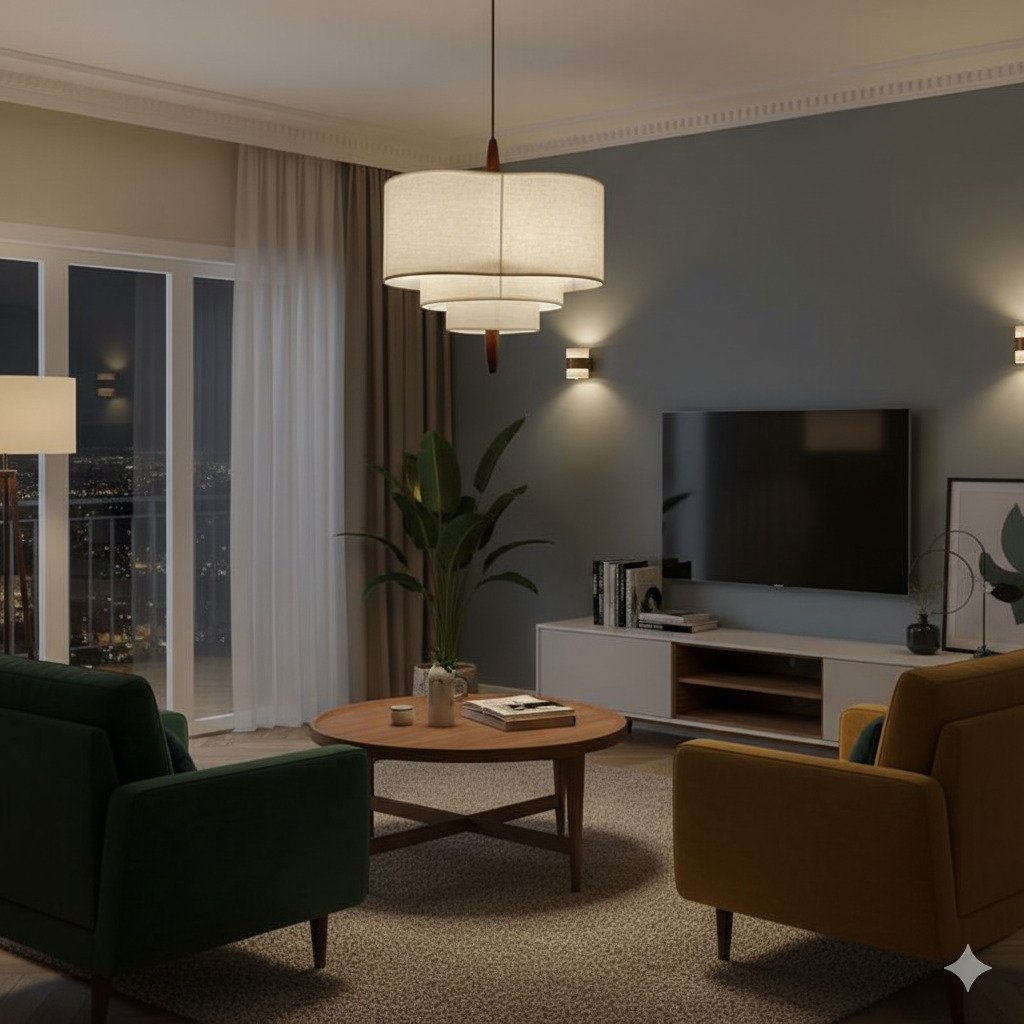 A timeless, three-tiered linen pendant that adds architectural depth and soft, organic warmth to your interior.