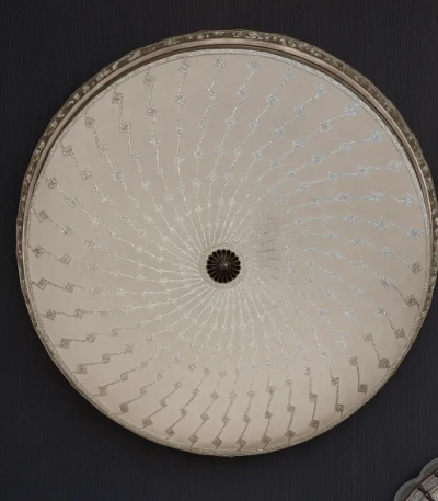 Specification Type: Flush/Surface-mount ceiling light (indoor) Shade: Patterned/frosted glass with radial motif; central knob Finish: Gold/bronze accent ring with metal base Sizes: 300 mm / 400 mm / 500 mm Light Source: E27 LED bulbs (2–3 holders depending on size) Recommended Wattage: Max 10W per bulb (LED), total up to 20–30W CCT / CRI: Depends on bulbs used; 2700–3000K warm white, CRI ≥80 recommended Input Voltage: AC 220–240V, 50/60Hz (UAE standard) Dimming: Yes, with dimmable E27 LED bulbs + compatible dimmer IP Rating: IP20 (indoor dry areas) Installation: Ceiling mounting plate; hardwired Lifespan (typ.): Bulb-dependent; LED bulbs typically 15,000–25,000 hrs Warranty: 2 years (fixture) Recommended Room Size: 8–20 m² (choose size accordingly) Applications: Living rooms, bedrooms, corridors, foyers, cafés, hotel rooms