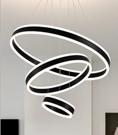 Specification Feature: Details Product Type: Modern LED Chandelier Design Variants: Ring, Spiral, Abstract, Geometric Material: Aluminum, Metal, Silicone Lighting Type: LED (Integrated, Non-replaceable) Power Source: AC 85V–265V (Standard UAE voltage supported) Wattage Range: 40W – 120W (depending on model) Color Temperature: 3000K–6500K (Warm White to Cool Daylight) Dimmable: Yes (Model-specific, dimmer switch compatible) Mount Type: Ceiling-mounted Usage: Indoor only (Living Room, Dining Room, etc.) Installation Kit: Included LED Lifespan: Up to 50,000 hours