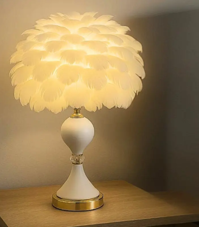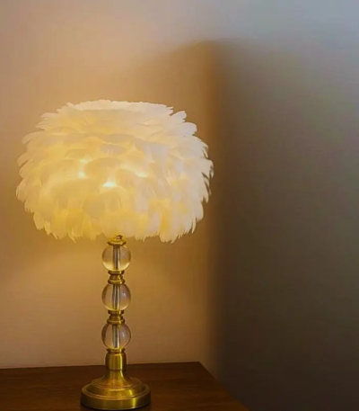 Specification : Product Type: Crystal Feather LED Desk Lamp Material: Crystal, Metal, Glass Light Source: LED Power Supply: AC 85-265V Color Temperature: Warm White (3000K) Switch Type: Touch / Button Dimensions: Approx. 30cm height Style: Nordic, Modern, Minimalist Usage: Bedroom, Bedside, Desk, Home Decoration