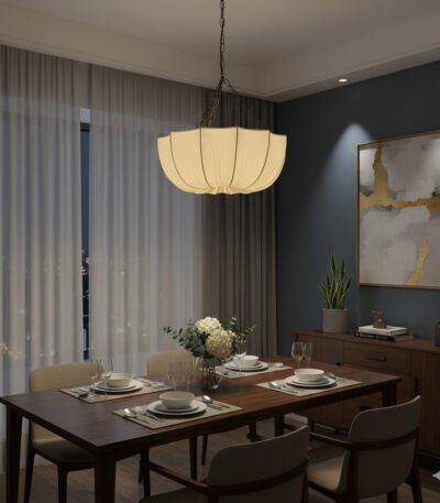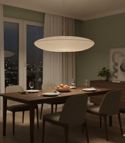 د.إ230.00 – د.إ410.00Price range: د.إ230.00 through د.إ410.00A sleek, low-profile fabric pendant that delivers a wide, balanced glow for a sophisticated modern aesthetic.