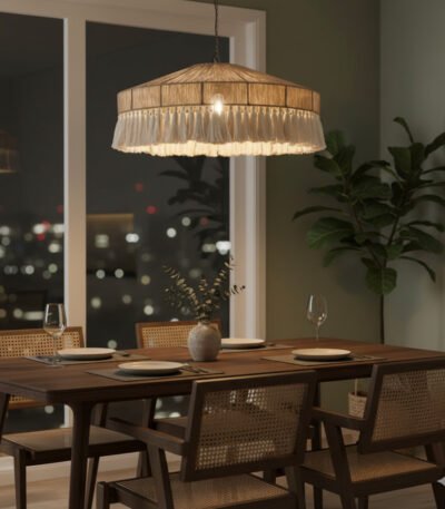 د.إ730.00 – د.إ1,070.00Price range: د.إ730.00 through د.إ1,070.00A statement-making bohemian chandelier that blends natural textures with an elegant, flowing fringe.