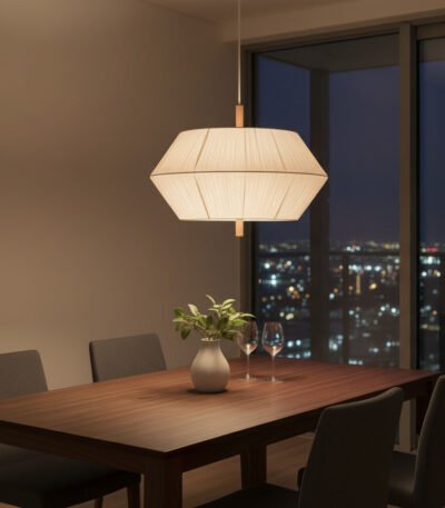 د.إ330.00 – د.إ510.00Price range: د.إ330.00 through د.إ510.00A geometrically balanced fabric pendant featuring fine thread detailing and natural wood accents for a modern organic look.