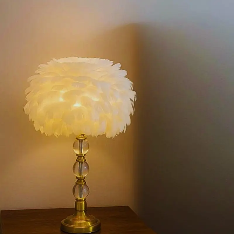 Crystal LED Feather Desk Table Lamp Nordic Modern Design