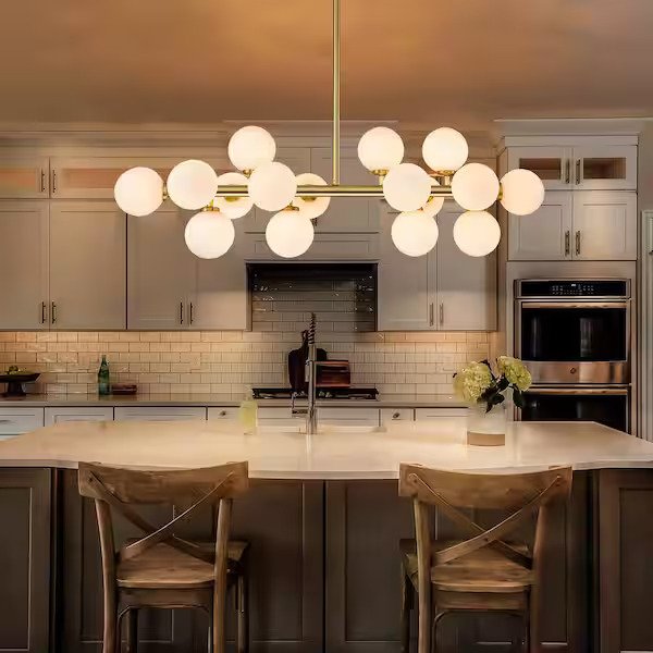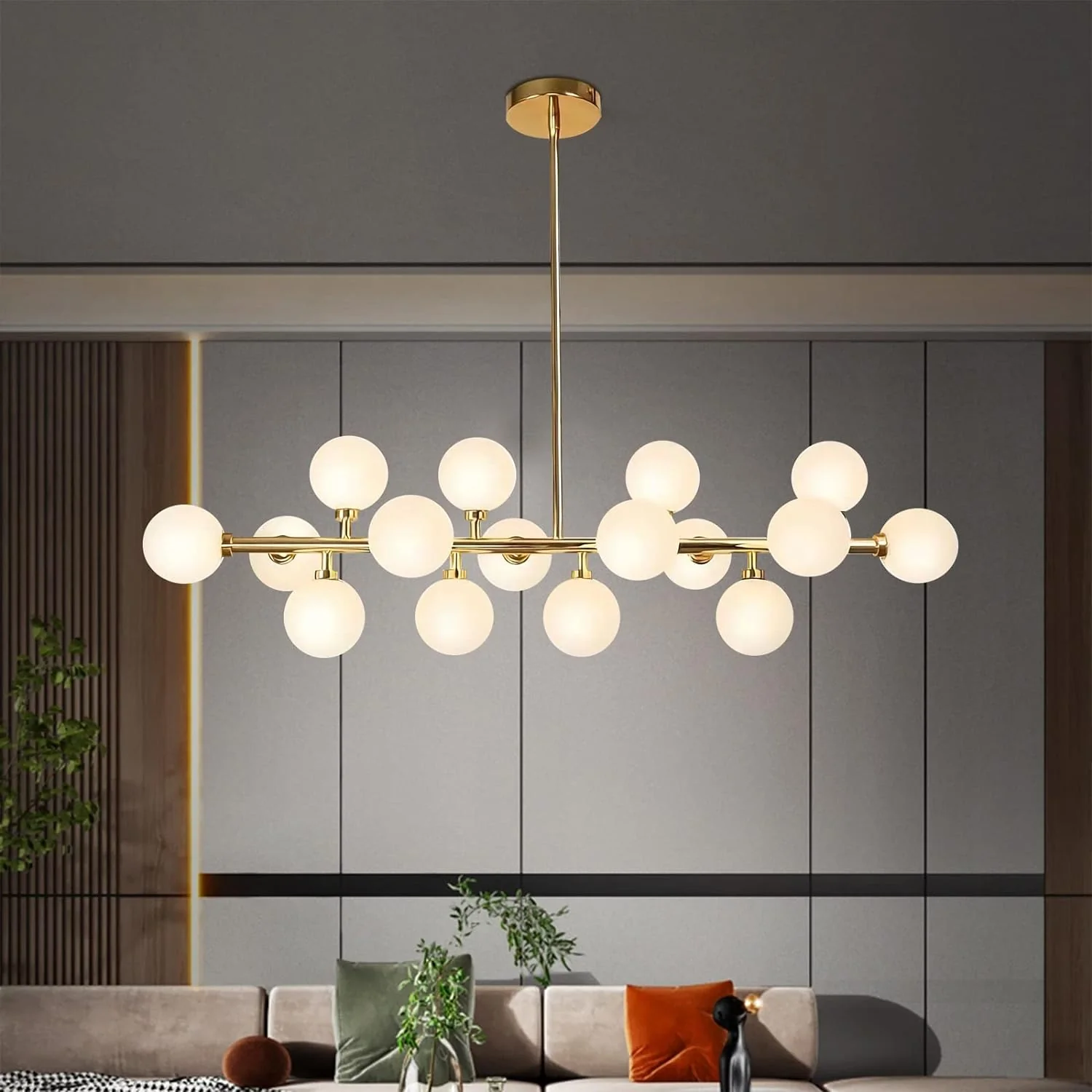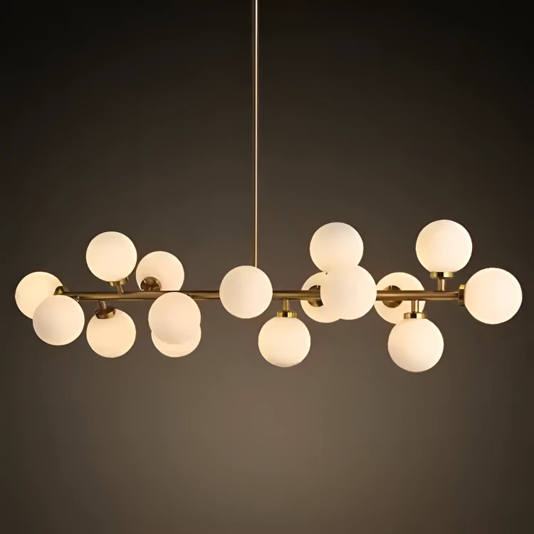 Warm, even light without glare. This modern globe chandelier pairs frosted opal glass with a slim branch frame, giving dining rooms and living spaces in the UAE a cosy, balanced glow. The height-adjustable drop and dimmable setup make it easy to fit over tables, islands, and lounge areas.
