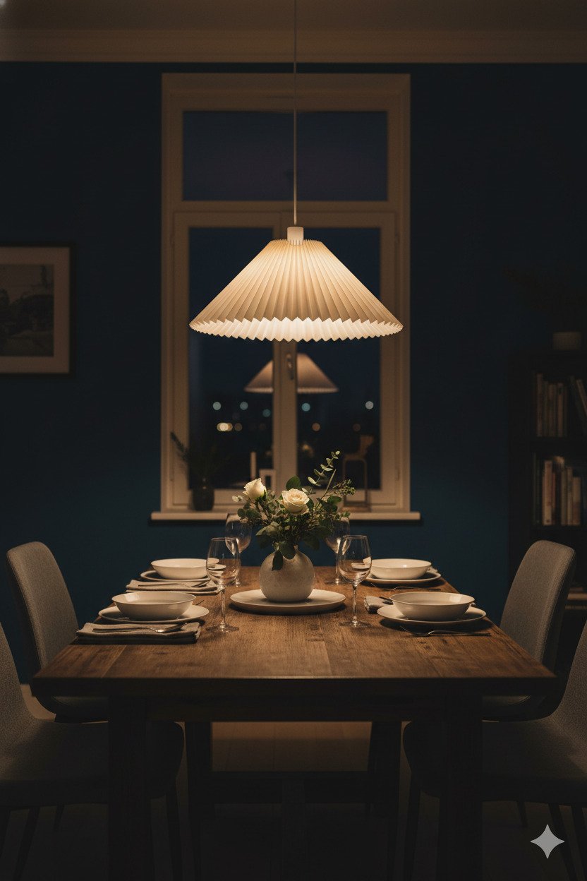 The Paper Umbrella pendant is a versatile lighting solution that blends the simplicity of origami-inspired folds with modern functionality. Made from high-quality pleated paper, it is designed to cast a soft, glare-free glow, creating an inviting and warm environment. Its iconic conical shape is perfect for focused task lighting over dining tables (as seen in your image), kitchen islands, or as a cozy ambient light in bedrooms. It is an ideal fit for Scandinavian, minimalist, or transitional interior designs.